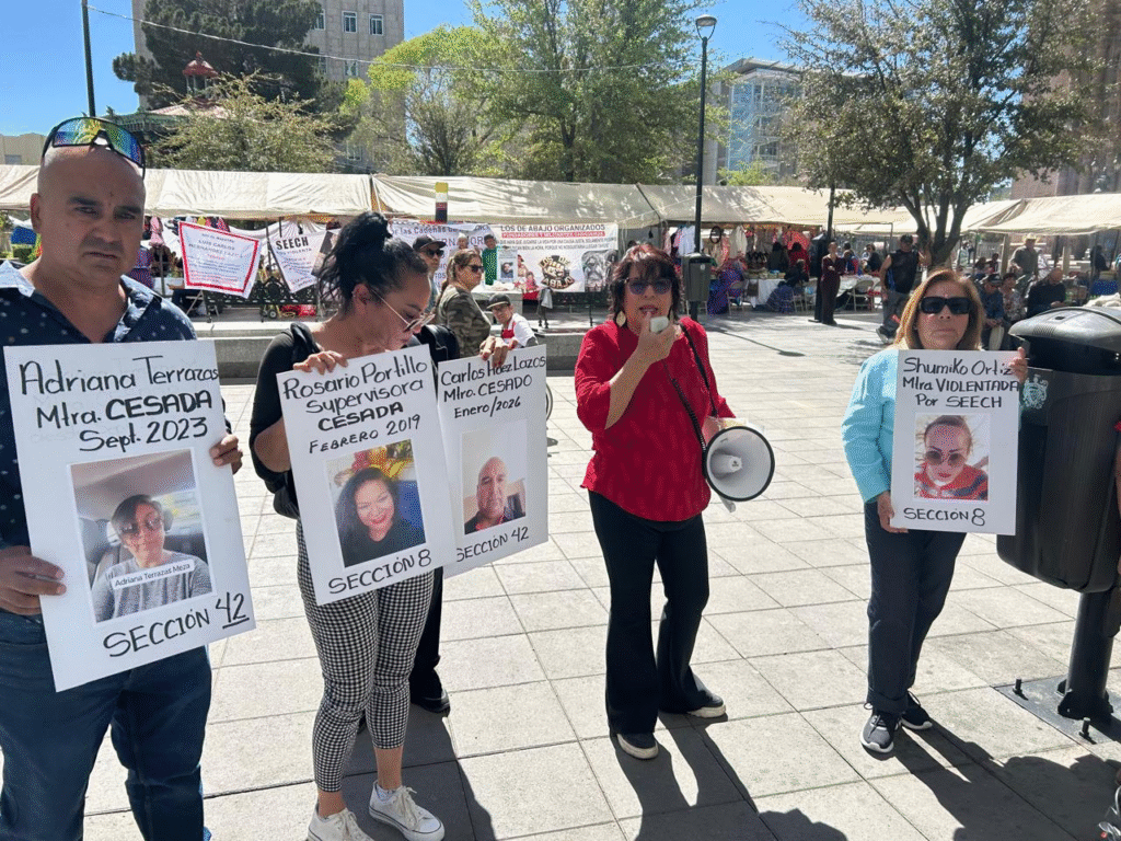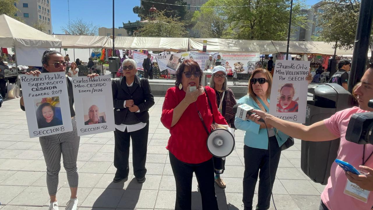 Este jueves, un grupo de docentes se manifestó en la entrada del Congreso del Estado de Chihuahua para denunciar presuntos despidos injustificados y exigir atención de las autoridades estatales, señalando que algunos casos llevan hasta más de 18 años sin resolución.