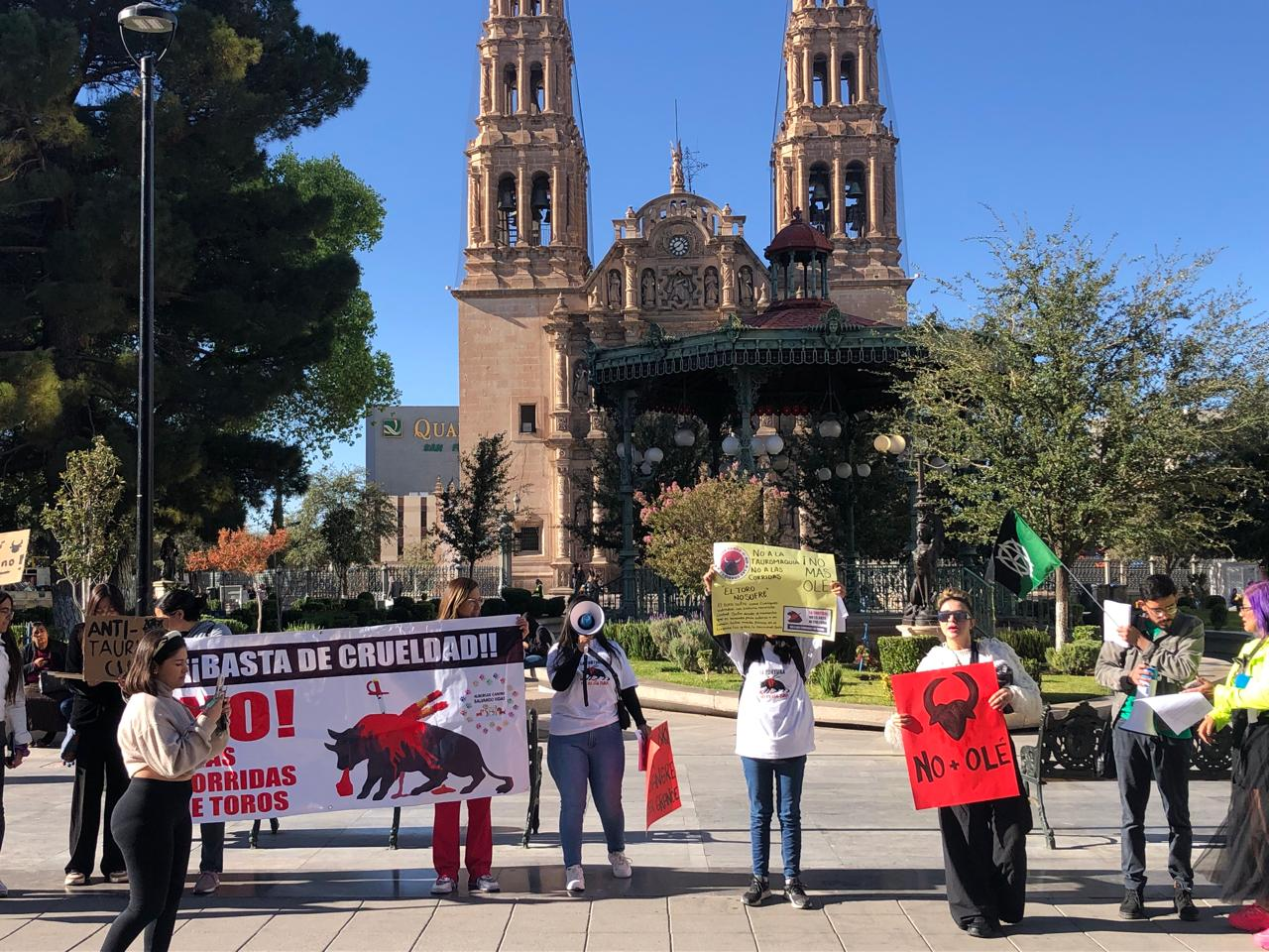 Luego de bloquear la Calle 11 junto al Palacio de Gobierno así como el acceso a el mismo, manifestantes en contra de las corridas de toros se movilizaron hacia la Plaza de Armas, frente a la Presidencia Municipal, para continuar con su protesta. La manifestación, en rechazo a la corrida programada para el 23 de noviembre en la Plaza de Toros, ha desquiciado el tráfico en el Centro de la ciudad, afectando la circulación en varias calles aledañas.