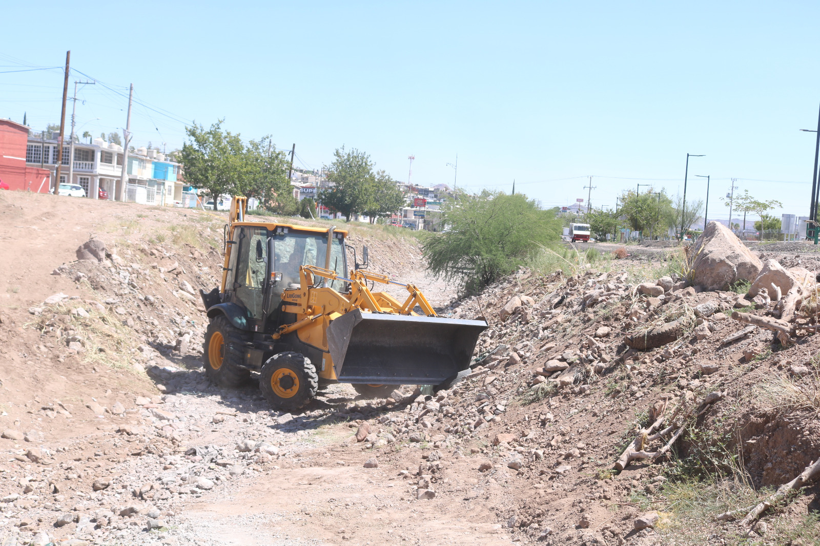 Con maquinaria pesada, personal de la dependencia en mención se encarga de retirar la basura acumulada, además de remover el escombro que la ciudadanía deposita en estos espacios, esto, para evitar taponamientos que a su vez podrían derivar en una inundación.