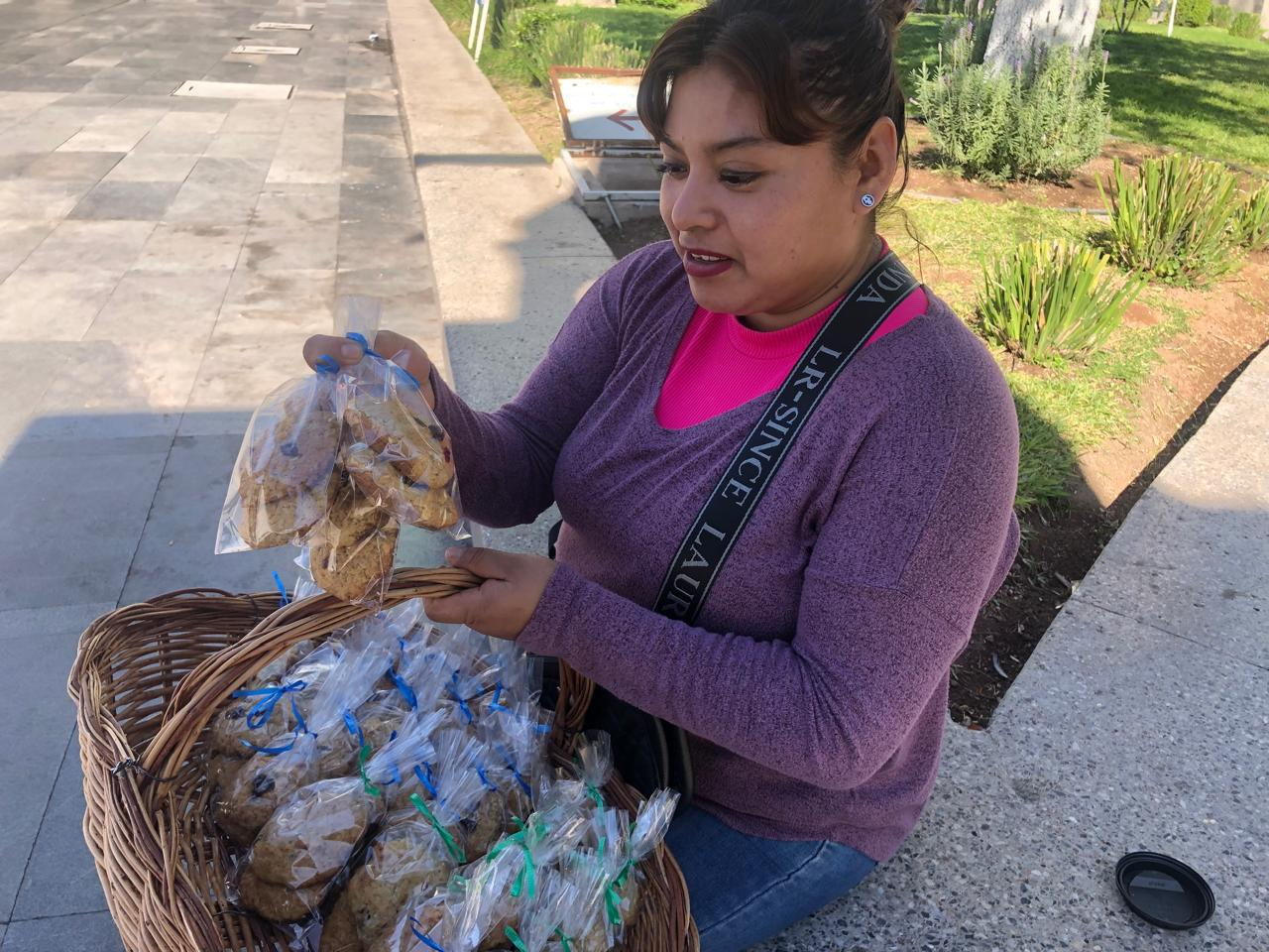 En la Plaza de Armas, en el corazón del Centro Histórico de Chihuahua, Marina Hernández Pérez ofrece diariamente sus galletas artesanales, elaboradas con ingredientes naturales y reducidas en azúcar, ideales para personas con diabetes o que buscan opciones más saludables.