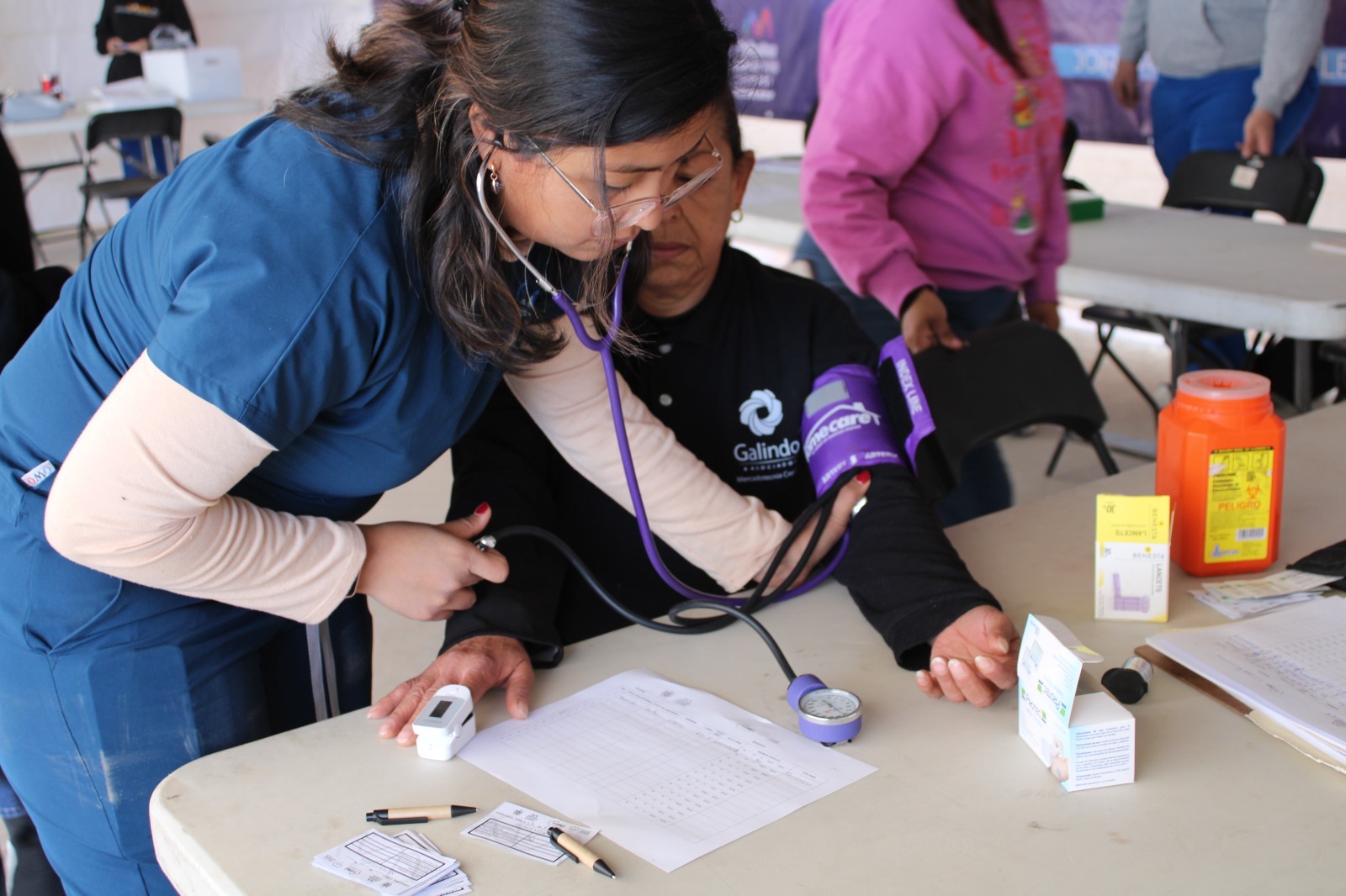 - Toma de presión arterial y prueba para detección de diabetes.