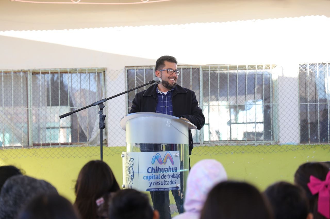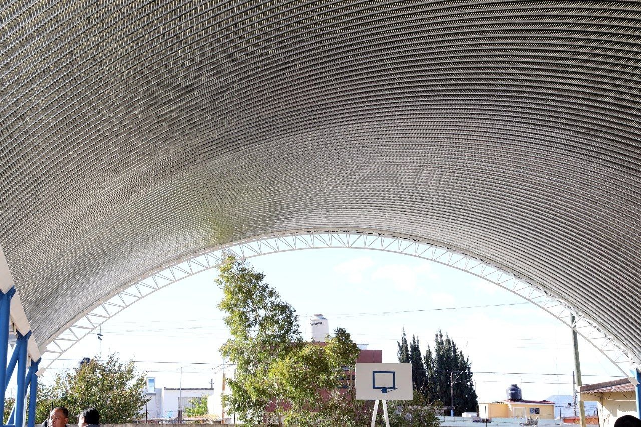 Chihuahua, Chih. A 2 de febrero de 2024.- El trabajo en equipo entre el Gobierno del Estado, Municipio, la Fundación del Empresariado Chihuahuense (FECHAC) y los padre de familia de la primaria John. F. Kennedy, hicieron posible la construcción de un domo en la cancha de uso múltiples de dicha escuela para que niñas y niños practiquen deporte bajo la sombra.