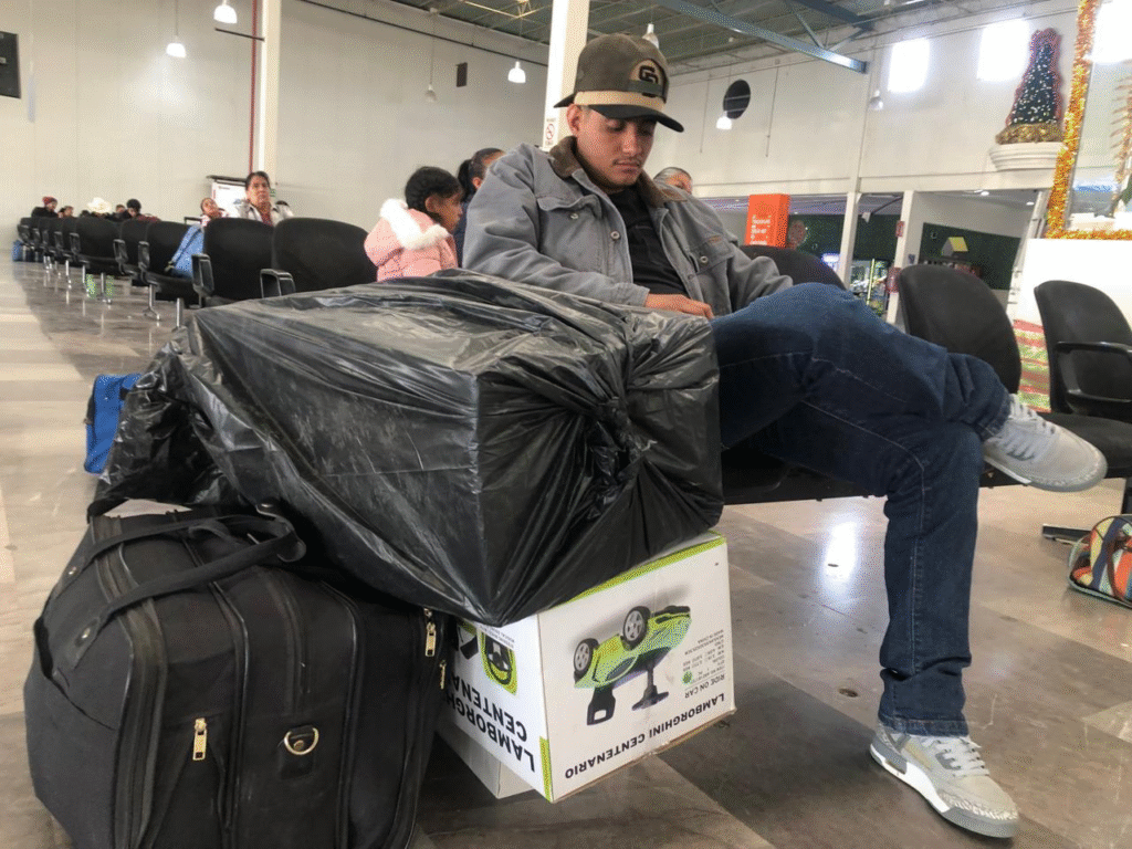 Desde Cuauhtémoc, Damián Alexis Lezma Ramos llegó a la capital para celebrar con su esposa e hijos. “Tenía como mes y medio sin verlos. La Navidad es para estar en familia”, compartió mientras esperaba ser recibido por sus seres queridos, quienes lo aguardaban con los preparativos de la cena y los regalos.