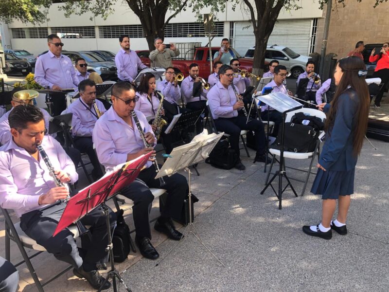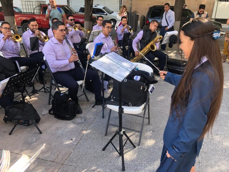 En el marco de las festividades del Día del Niño, la pequeña Ingrid Paola Dávila Díaz protagonizó un momento memorable al dirigir a la Orquesta del Estado de Chihuahua, integrada por 29 músicos, durante un evento frente al Edificio Héroes de la Revolución en el centro histórico de la ciudad.