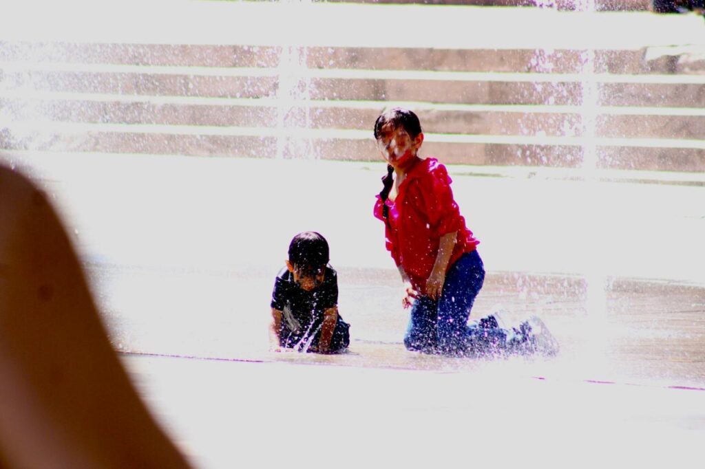 Con un día soleado y nubes dispersas que marcaron 31 grados centígrados, los niños no dudaron en refrescarse en las fuentes ubicadas frente a la Catedral en la plaza de armas, en el corazón de Chihuahua. Entre risas y saltos, los pequeños se divirtieron mojándose y jugando bajo los chorros de agua y los rayos del sol, aprovechando el clima para disfrutar de un momento de esparcimiento en plena zona centro.
