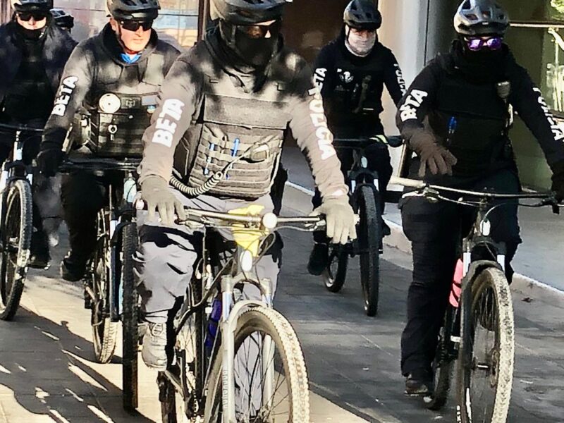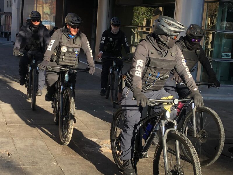 Este martes 7 de enero de 2025, la vigilancia en el Centro Histórico de Chihuahua se intensificó desde las primeras horas del día con la presencia de oficiales del Grupo Beta, quienes patrullan las calles a bordo de bicicletas para garantizar la seguridad de los transeúntes y compradores.