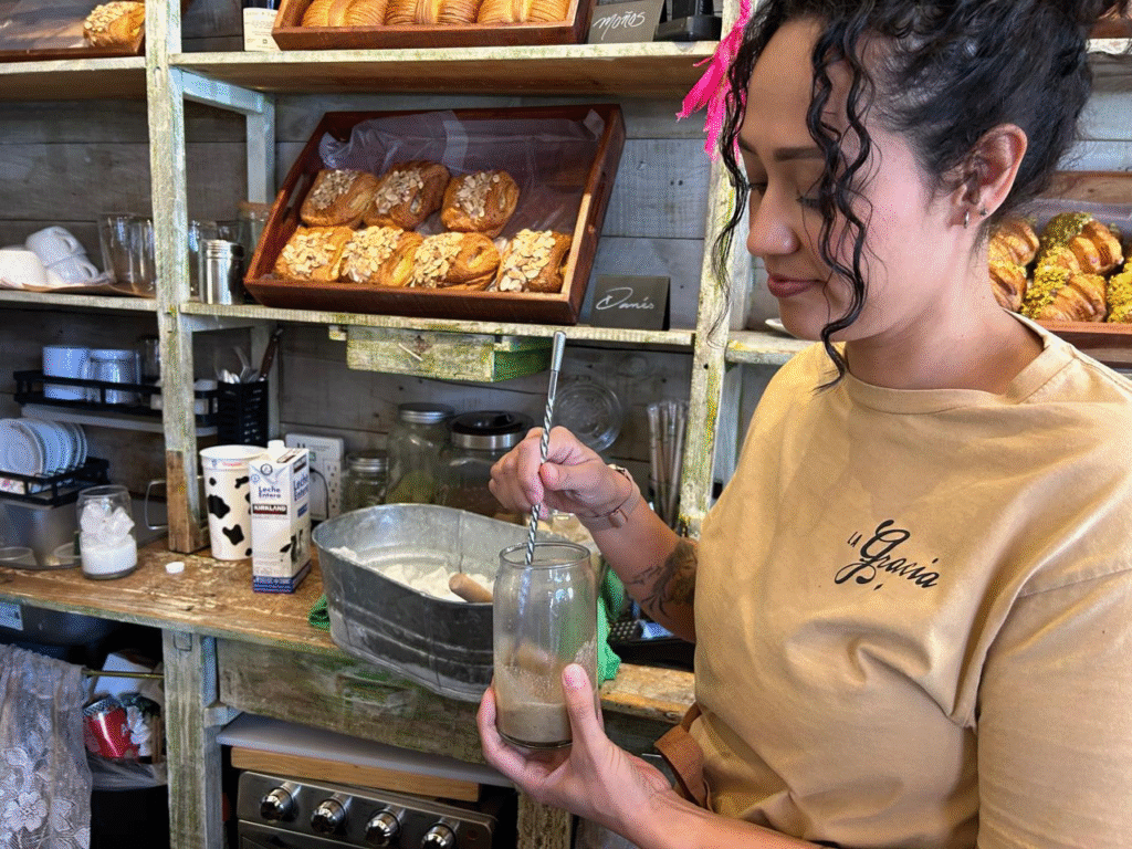 Durante un recorrido, la gerente del establecimiento, Mariana Acosta, explicó que el negocio cuenta con una oferta diversa que incluye croissants, chocolatines, galletas y distintas piezas dulces, destacando que todo el producto es elaborado de manera artesanal en una cocina ubicada a una cuadra del punto de venta.