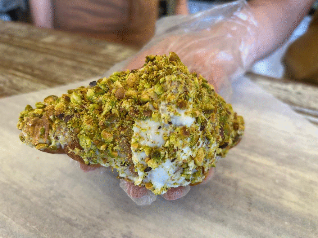 Entre las especialidades más llamativas se encuentran los croissants rellenos de crema de pistache, los diamantes de Nutella, el tradicional moño con crema pastelera y chocolate, así como el plié de ate con queso Chihuahua, además de los populares nidos de guayaba, considerados entre los favoritos del público.