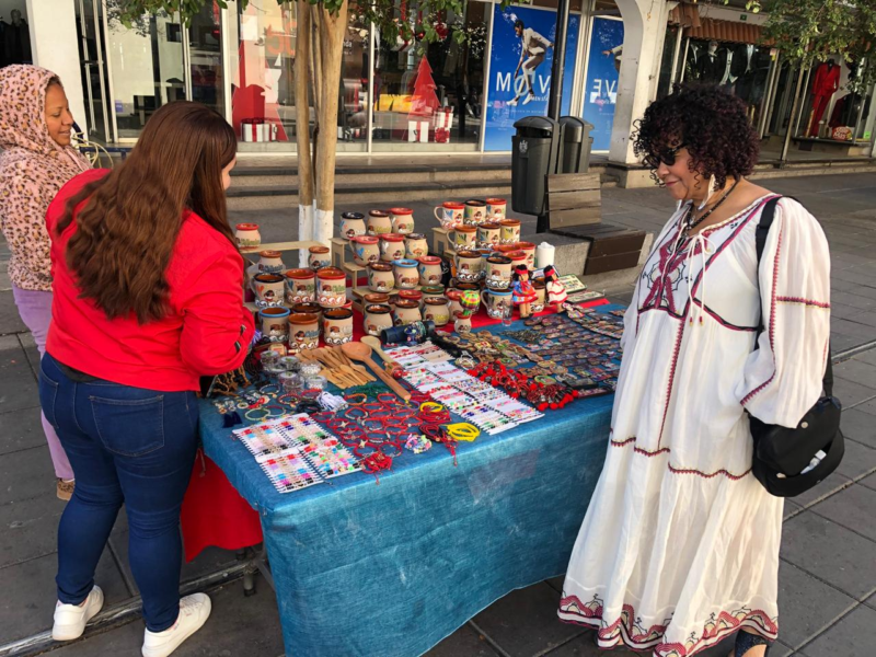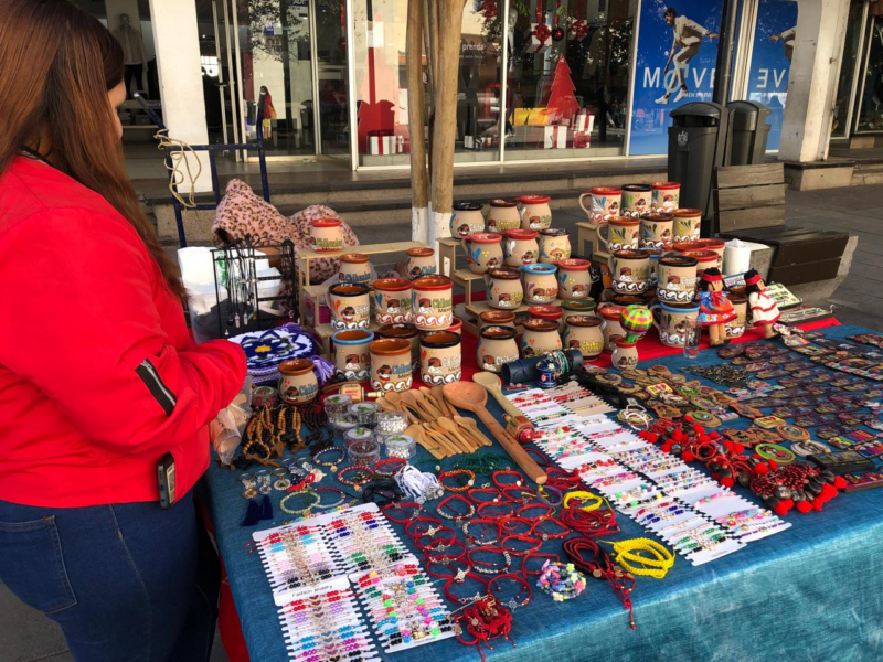 La ubicación de su puesto, cerca de una tienda departamental en la calle Victoria, es estratégica para captar la atención de quienes transitan por la zona. Paola espera que, al acercarse las fiestas decembrinas, su oferta artesanal atraiga a más personas en busca de regalos con un toque especial y auténtico.