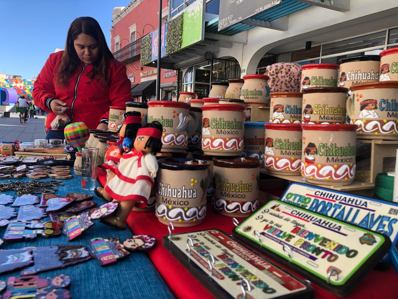 En su pequeño puesto, Paola vende una variedad de productos, todos elaborados a mano, entre los que destacan jarros para café, llaveros, pulseras tejidas, muñecas y pequeños imanes de madera. “La mayoría de las piezas vienen de Carichí, en la Sierra Tarahumara, y están hechas por artesanos locales”, comenta. Su mercancía refleja el esfuerzo y la tradición de la comunidad artesanal de Chihuahua, quienes trabajan con materiales naturales y técnicas tradicionales.