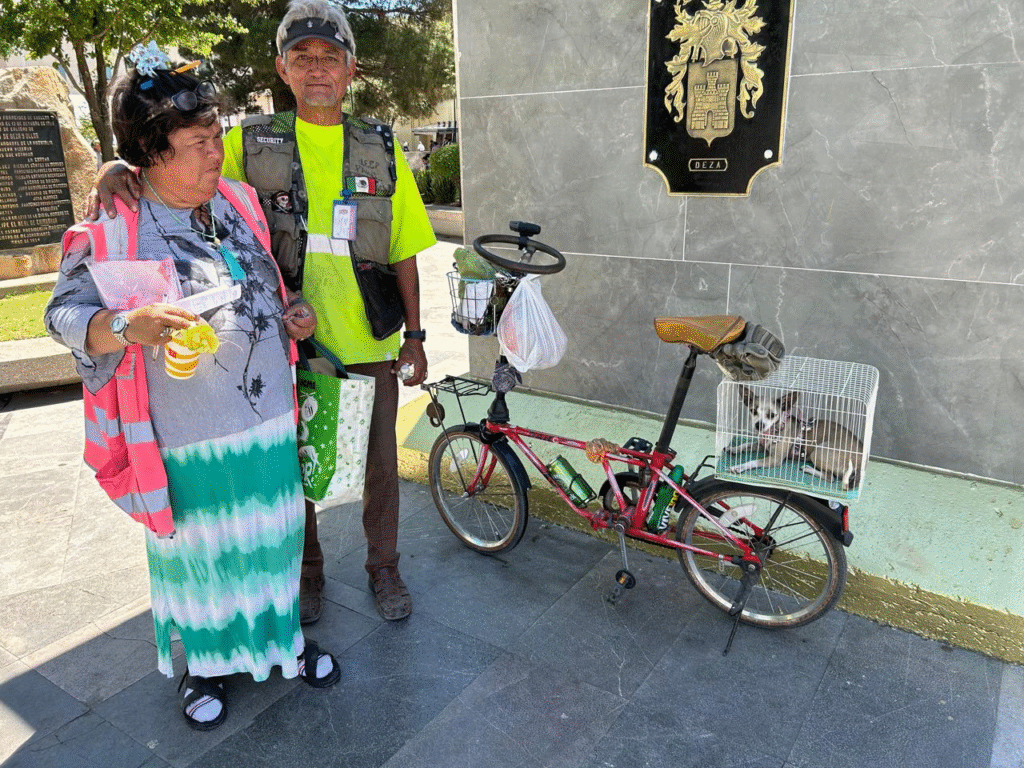 Alejandro Ramírez Alemán, de 64 años, y Hermelinda Rascón Monca, de 46, ambos nativos de Chihuahua capital, han convertido una bicicleta peculiar en su medio de transporte y herramienta de trabajo. El vehículo, adquirido en una venta de garage en San Federico por 500 pesos, cuenta con un volante de automóvil, luces delanteras y un sistema que le permite doblarse a la mitad para facilitar su almacenamiento.