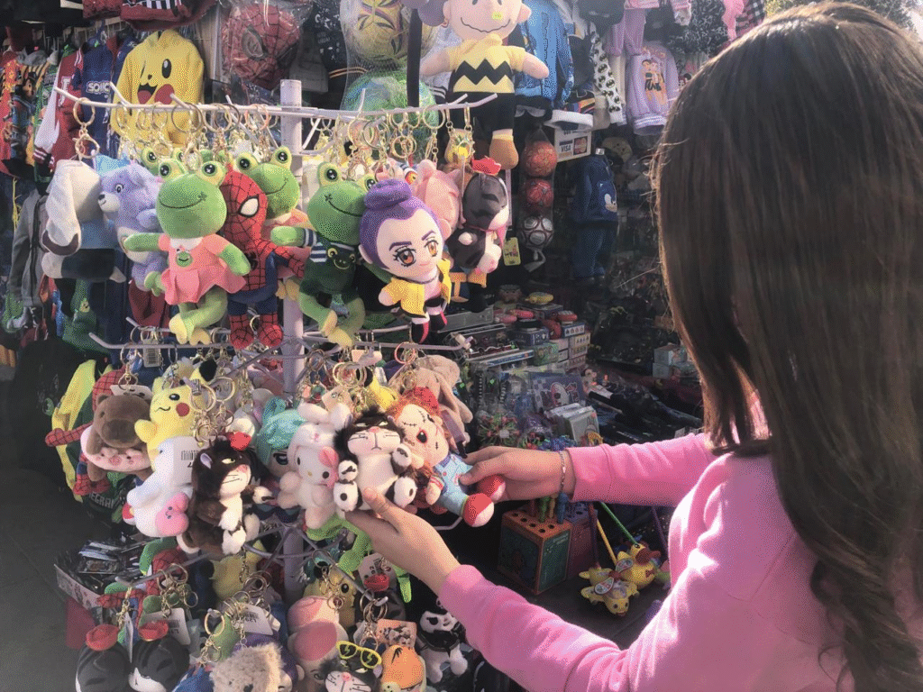 Uno de los comerciantes es Martín Breones, quien señaló que en su puesto se pueden encontrar juguetes para niños, principalmente enfocados en las compras de Navidad. Entre los artículos disponibles hay peluches de distintos tamaños, desde llaveros hasta peluches grandes, así como figuras y juguetes populares de temporada, como los llamados squiches.
