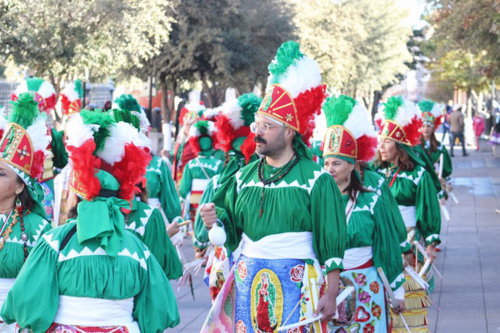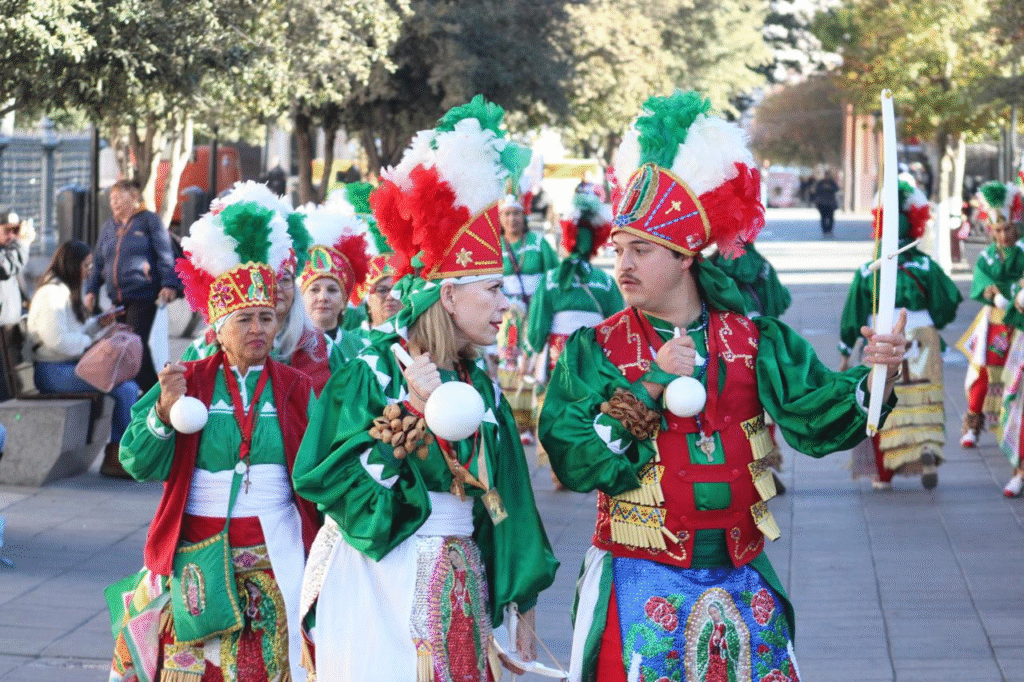 Con el ritmo de tambores y el colorido de sus trajes, el grupo de danza “Somos artistas de la calle”, encabezado por Luli Leos, partió este 6 de diciembre desde la Catedral Metropolitana de Chihuahua hacia el Santuario de Guadalupe, como parte de la tradicional peregrinación guadalupana. “No andamos en la calle por casualidad, somos danza, somos artistas y vamos a la peregrinación del movimiento de la Virgen de Guadalupe, a dar gracias como cada año”, comentó Luli Leos, encargada del grupo, en entrevista.