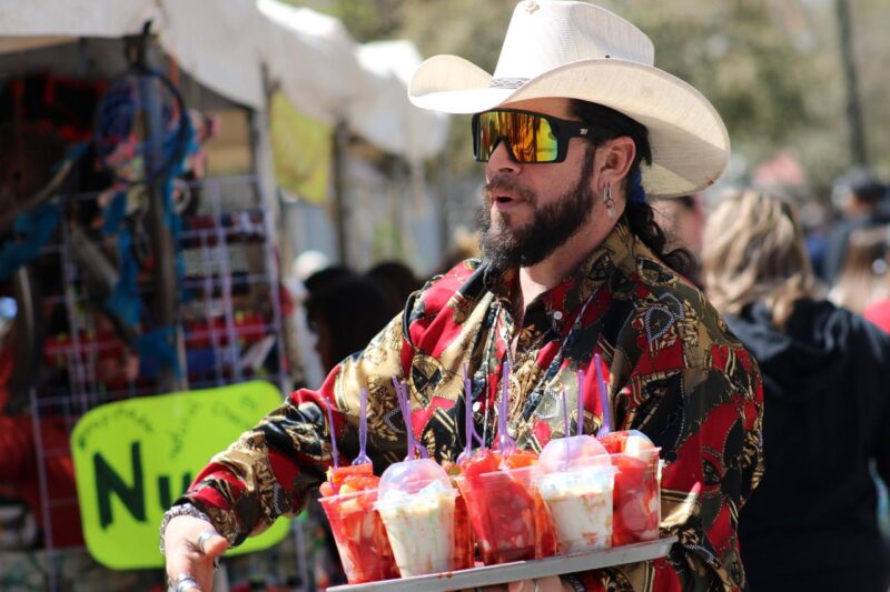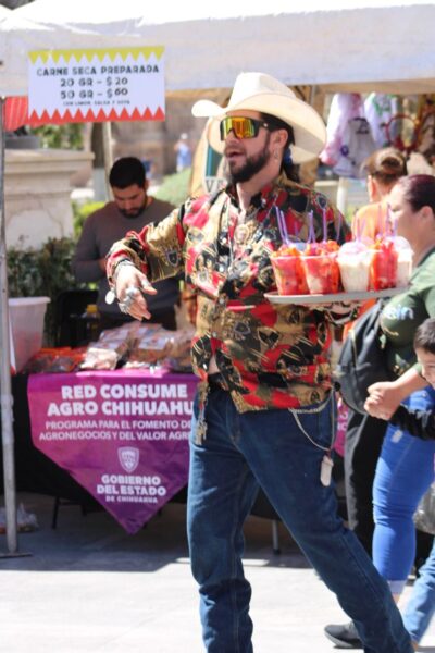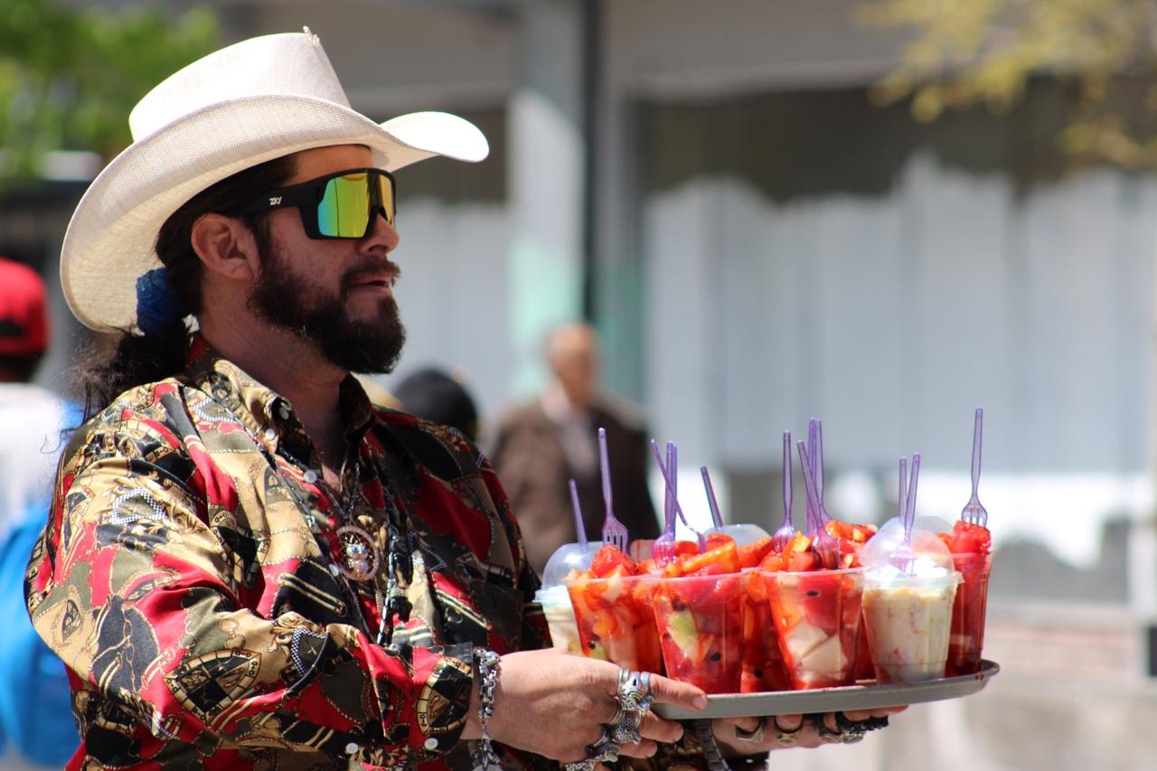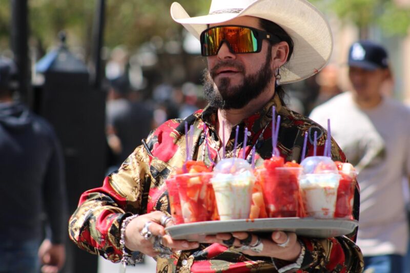 Al mediodía de este sábado, la Plaza de Armas de Chihuahua se llenó de aromas dulces y picantes gracias a un vendedor que ofrece cócteles de frutas frescas a precios accesibles. Bajo el nombre de “Aguiñadas”, el comerciante prepara dos opciones destacadas: