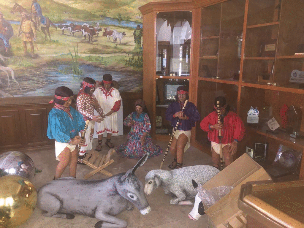 Las piezas, resguardadas en uno de los salones del edificio municipal, muestran rasgos y vestimentas que remiten a la tradición indígena de la Sierra Tarahumara, lo que ha generado expectativa sobre una posible renovación en la manera de representar la escena navideña en el corazón de la ciudad. Aunque las autoridades municipales no han emitido una confirmación oficial, la presencia de estas figuras sugiere que este año podría optarse por un montaje distinto al tradicional.