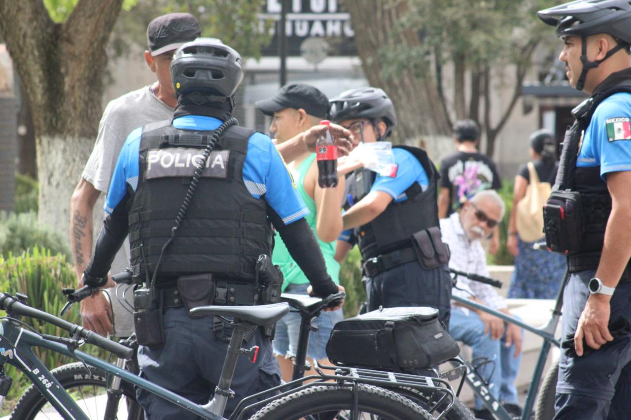 Policía Beta auxilia a hombre desmayado por calor en Plaza de Armas de Chihuahua