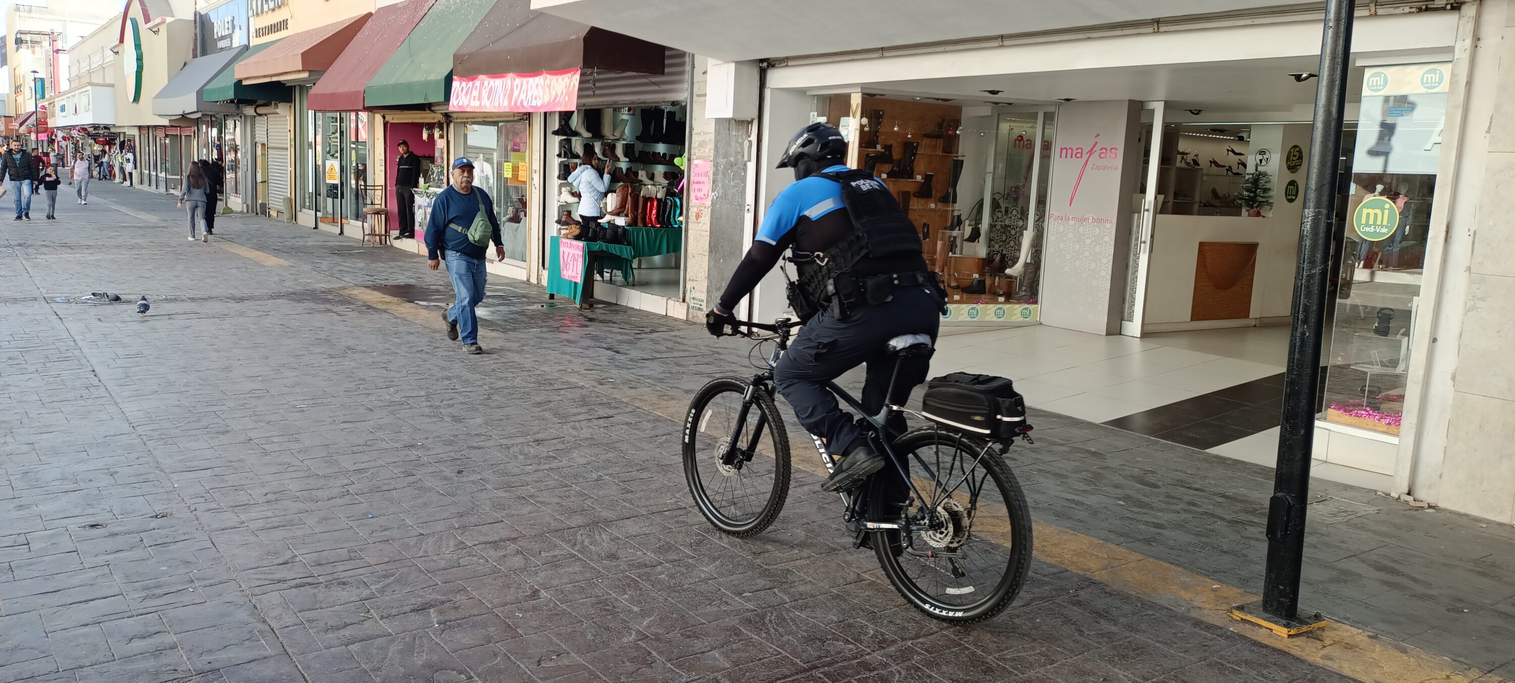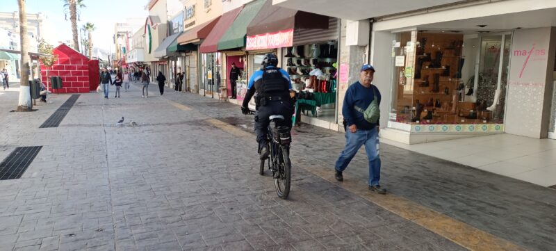 En el centro histórico de la ciudad, los policías del Grupo Beta se encuentran realizando rondines en sus bicicletas desde temprano, con el objetivo de brindar seguridad a los visitantes que acuden a la Plaza de Armas para disfrutar de la Feria Navideña 2024 asi como de otros espacios como la calle 4ta, calle Libertad y la calle Victoria.