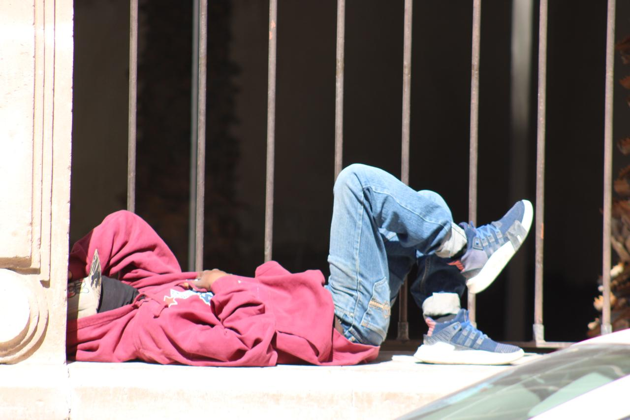 Más allá de interpretaciones, la imagen refleja una realidad visible en distintas zonas del primer cuadro de la ciudad, donde personas utilizan espacios públicos y fachadas comerciales para resguardarse o descansar.