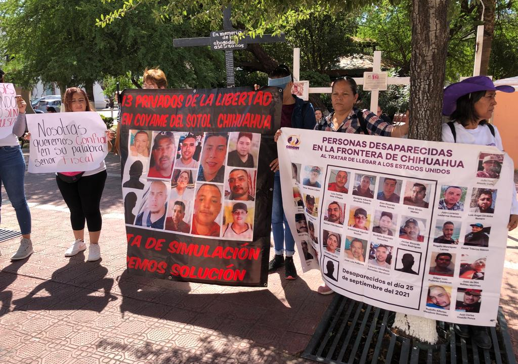 En una manifestación cargada de dolor, un grupo de valientes mujeres se congregó frente al Palacio de Gobierno de Chihuahua, portando pancartas y levantando sus voces en demanda de justicia para 13 personas que intentaron cruzar la frontera y desaparecieron en Coyame durante el año 2021.