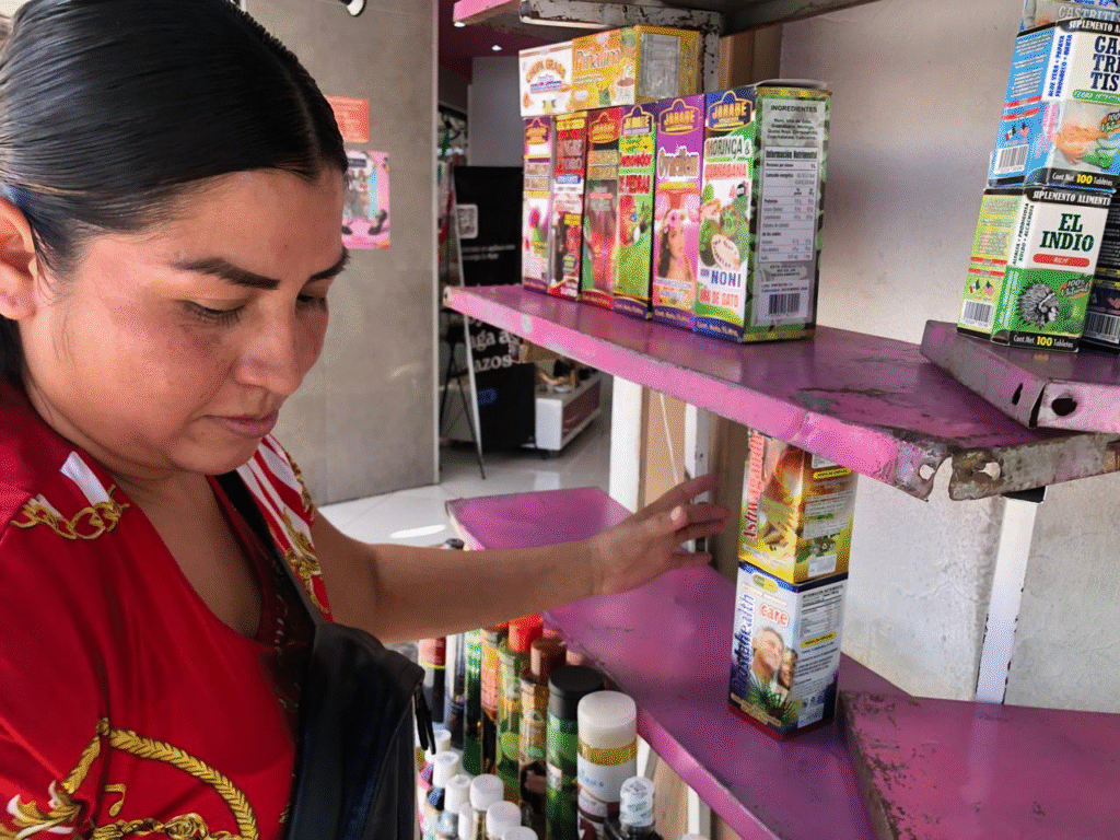 En las calles Libertad y Cuarta del centro de la ciudad, Magdalena Morales atiende a quienes buscan opciones de medicina natural. Entre sus productos destacan ungüentos como el Marihuanol –utilizado para desinflamar y aliviar dolores musculares, artritis y golpes–, así como la Postradavid, dirigida a problemas de próstata y retención de líquidos.