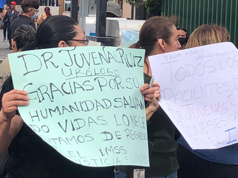 Los manifestantes, entre quienes se encontraban pacientes y familiares, consideran que la decisión del IMSS de prescindir de los servicios del doctor Ruiz afecta tanto al especialista como a los pacientes que dependen de su atención para seguir tratamientos y cirugías. Por lo tanto, están solicitando su reincorporación de manera urgente.