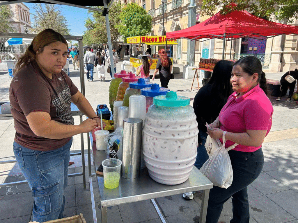 Con un clima cálido que superó los 23 grados Celsius, los vasos de agua fresca se convirtieron en un alivio para los peregrinos. Los puestos, ubicados estratégicamente cerca de la Catedral de Chihuahua, ofrecieron opciones como horchata, jamaica y limonada, además de elotes en vaso y otros antojitos, aprovechando la alta afluencia de personas.