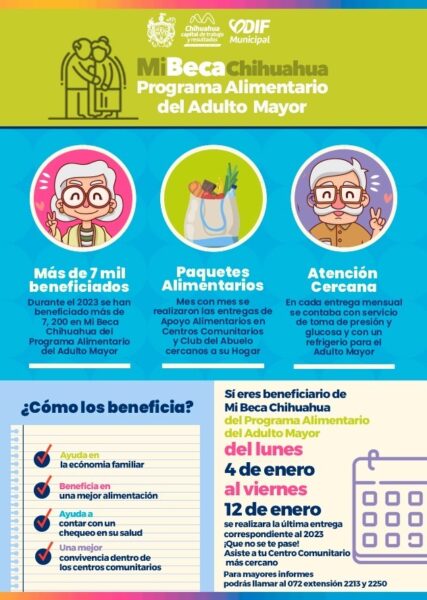*Chihuahua, Chih. A 4 de diciembre de 2023.-* En atención al compromiso que el alcalde, Marco Bonilla, tiene con las y los adultos mayores de Chihuahua Capital, para garantizarles una mejor calidad de vida, el Gobierno Municipal, a través del DIF, informa sobre la última entrega del Programa Alimentario del Adulto Mayor (PAAM) de este año.