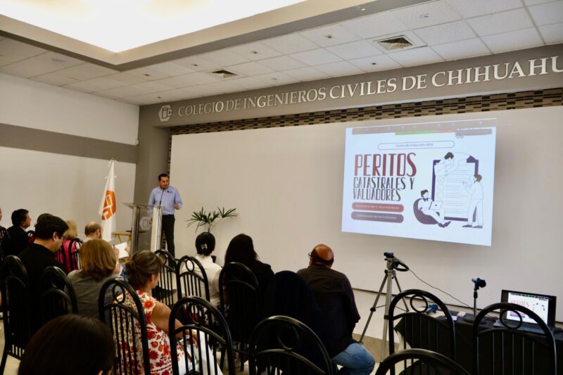 Chihuahua, Chih. A 16 de julio de 2024.- Como parte de los trabajos para fortalecer las labores que realizan las y los peritos catastrales, la Tesorería y la Secretaría de Ayuntamiento, efectuaron una capacitación en el Colegio de Ingenieros y en la Cámara Mexicana de la Industria de la Construcción (CMIC) dirigida a nuevos peritos.