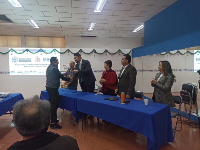 Chihuahua, Chih. A 18 de diciembre de 2023.- Para el alcalde Marco Bonilla es de suma importancia el apoyar a las y los emprendedores de la Capital, es por ello que el Gobierno Municipal de Chihuahua, a través de los Módulos de Impulso a la Economía Familiar (MIFAM), finalizó con éxito los distintos programas de negocios en las colonias Valle Dorado y Vallarta.