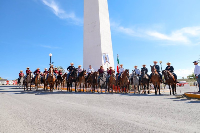 Los jinetes llegaron a la caseta de Sacramento y de ahí cabalgaron hasta el obelisco dedicado a los héroes de la Batalla de Sacramento, en donde realizaron una guardia de honor y colocaron una ofrenda floral.