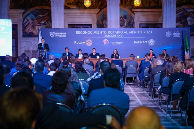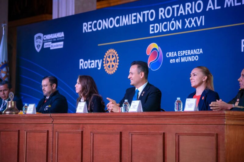 “En Chihuahua, como en cada rincón del mundo donde participa esta organización, los rotarios han sido una fuerza positiva para el bienestar y el progreso de los grupos más vulnerables. En el Gobierno Municipal apreciamos su empeño y su buena voluntad para fomentar el intercambio cultural entre países, para contribuir a la causa de la paz entre los continentes, para llevar alimentos, medicinas, ropa, vivienda a los afectados por desastres naturales y educar a miles de personas en colonias”, remarcó el Alcalde.