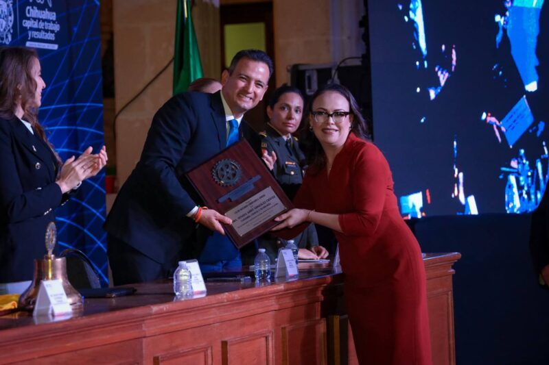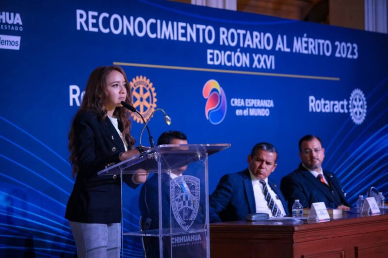 Finalmente, en representación de la gobernadora Maru Campos, la secretaria de Desarrollo Humano y Bien Común, Carla Rivas, expuso que detrás de cada uno de los rotarios existen muchas historias de muchas personas que han logrado el éxito, gracias al apoyo de los Rotarios.
