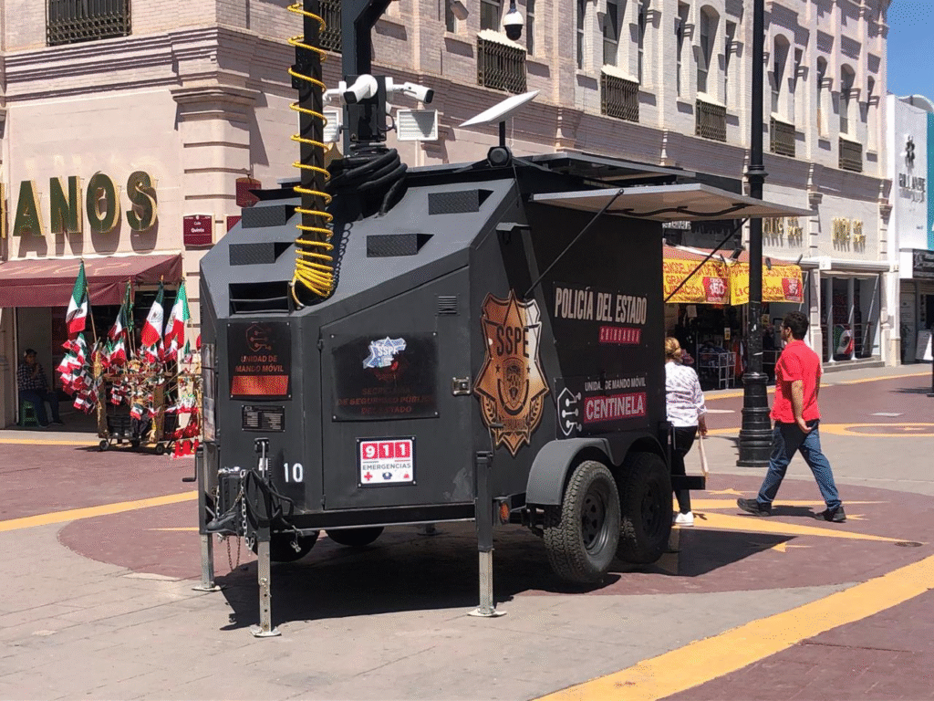 Estas unidades, pertenecientes a la plataforma Escudo Chihuahua, están equipadas con cámaras de vigilancia y antenas de comunicación para monitorear y garantizar la seguridad de las familias que asistirán al Grito de Independencia en la Plaza del Ángel y zona centro.