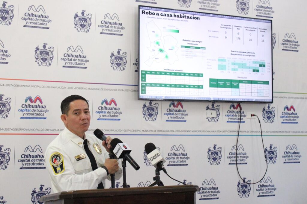 Durante la rueda de prensa, el comisario presentó proyecciones numéricas que muestran la tendencia en robos y homicidios para los últimos tres meses del año, destacando que septiembre cerró con 21 homicidios (por debajo de la meta de 25), 3 robos con violencia (uno menos que en agosto), y 42 robos sin violencia (frente a 22 en agosto y 35 en septiembre de 2024). Explicó que el aumento en robos sin violencia se debe principalmente a sustracciones parciales de vehículos (tapas, baterías, estéreos), mientras que en robos a casa habitación se registraron solo 2 eventos con violencia y 9 sin violencia, lo que representa 6 eventos menos y 225 casas menos robadas en el acumulado anual.