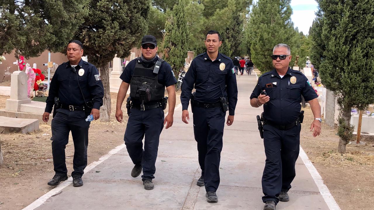 Desde el 1 al domingo 6 de noviembre, 100 policías y cadetes que se encuentran actualmente en preparación, así como bomberos, personal de Protección Civil e inspectores de Gobernación, brindaron seguridad a los más de 70 mil visitantes que acudieron a los panteones y a la Feria del Hueso, en la colonia San Jorge.