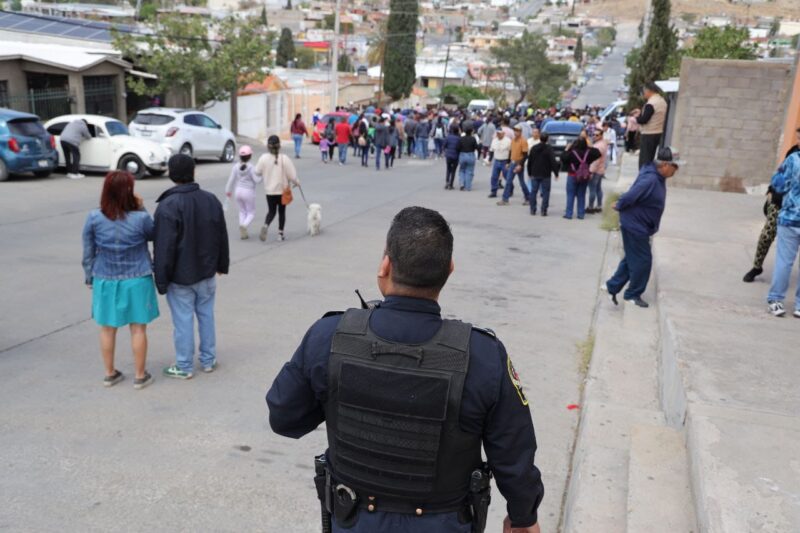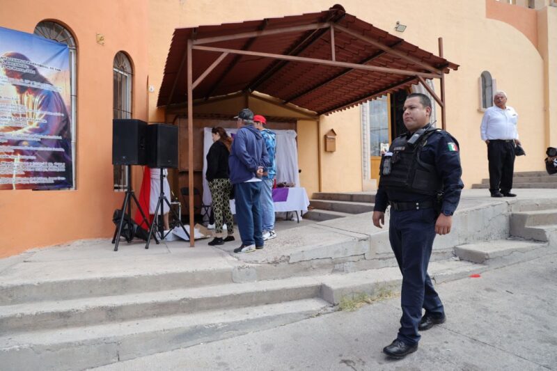 Chihuahua, Chih. A 29 de marzo de 2024.- Como parte de las acciones emprendidas por la seguridad y la tranquilidad de capitalinos y visitantes, agentes de la Policía Municipal estuvieron presentes durante las tradicionales celebraciones del viacrucis efectuadas en diferentes parroquias de la ciudad.