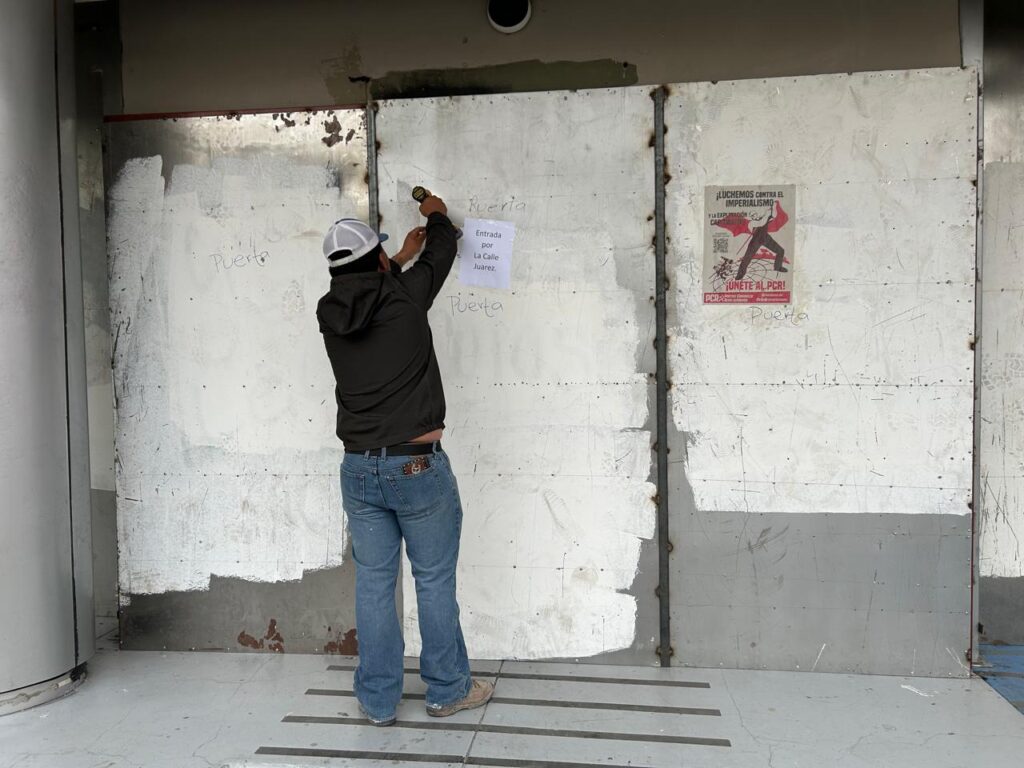 Durante la jornada del domingo se registraron pintas en muros y estructuras, así como algunos daños y quema de objetos en las inmediaciones del edificio.