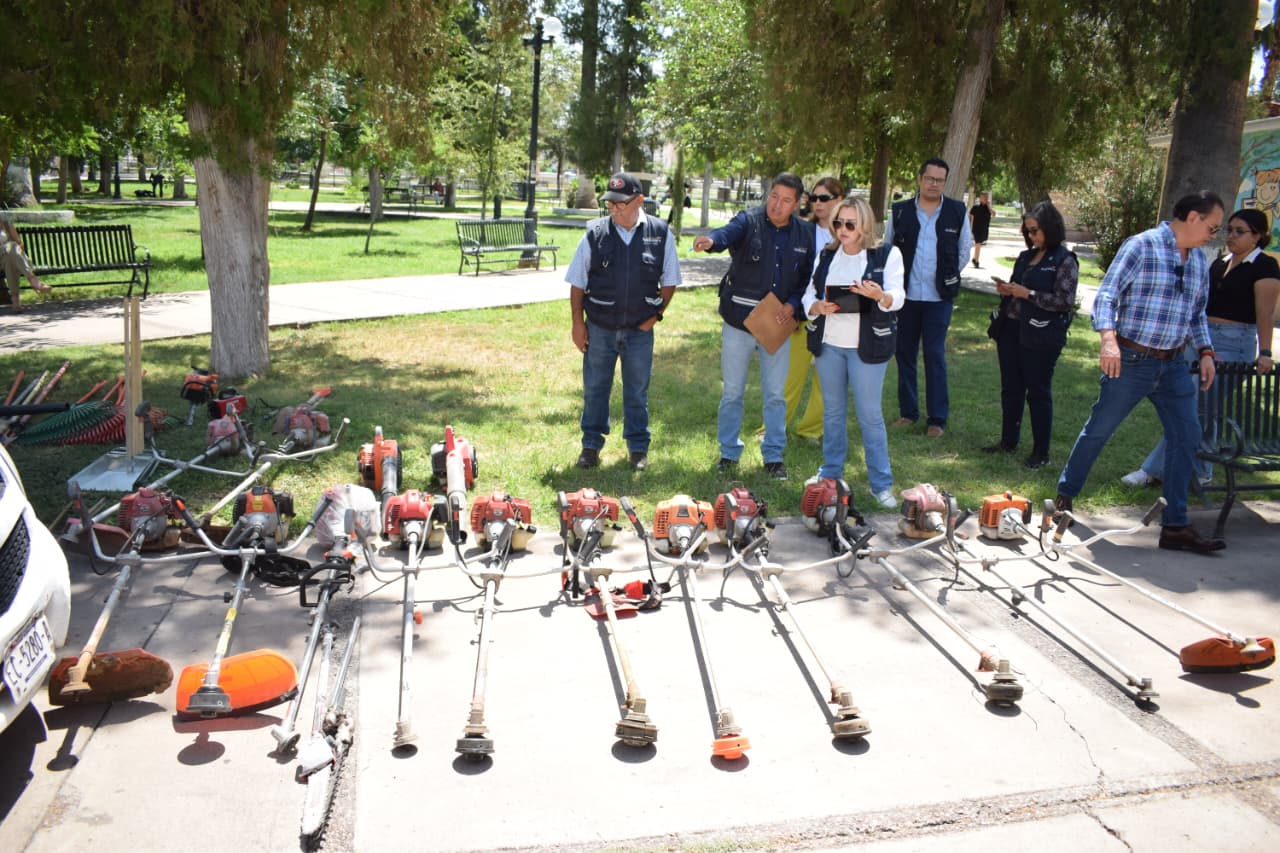 Entre el equipo revisado se incluyeron vehículos, remolques, sopladoras, motosierra, rastrillos, tijeras de podar, cortacéspedes (manuales, eléctricos o de gasolina), desbrozadoras y sopladoras, todas herramientas indispensables para el adecuado mantenimiento de los espacios públicos.