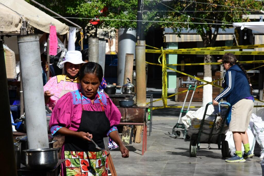 Durante el festival Sekáti Newárame, que se realiza en la Plaza de Armas de la capital chihuahuense, colocaron cintas amarillas de advertencia alrededor de las estufas de leña utilizadas por cocineras de la comunidad Rarámuri (Tarahumara) para preparar alimentos tradicionales. Esta acción busca prevenir accidentes y proteger a los transeúntes, especialmente a niños y familias, que visitan la zona durante el evento.