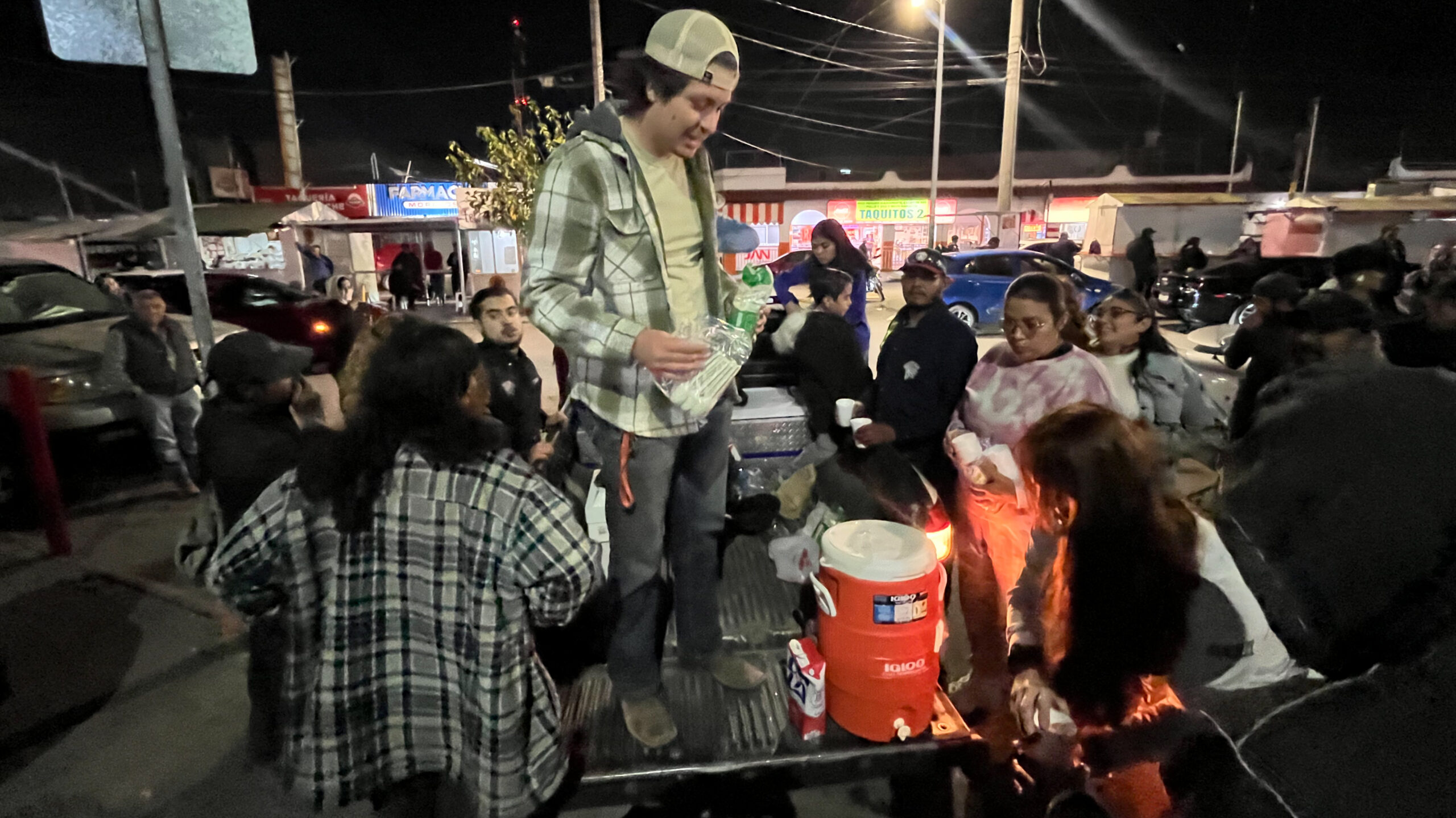 Repartieron cafés, panes, burritos y donas, a personas que esperaban afuera por sus pacientes.