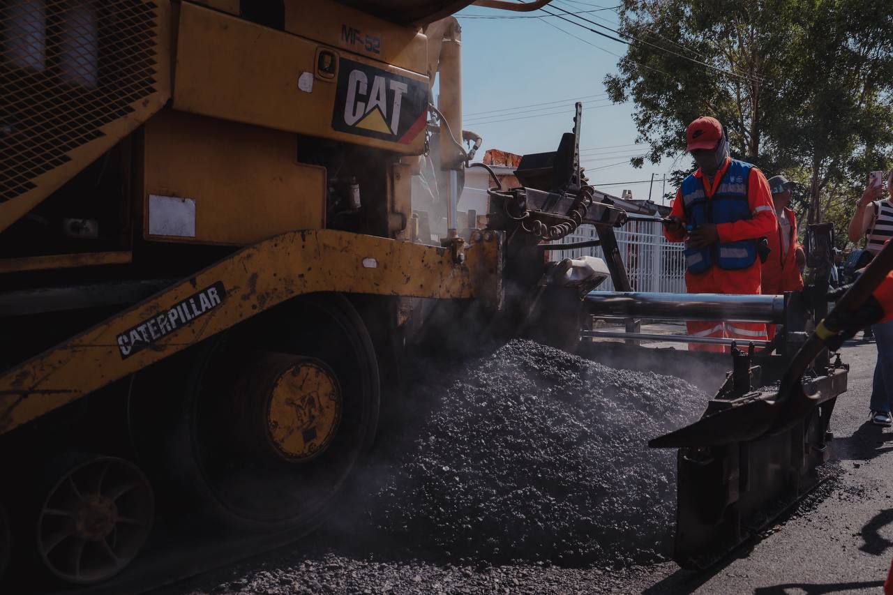 Se trabaja con mezcla de asfalto caliente desde la calle Ojinaga hasta la Francisco Villa, con una inversión de 3 millones y medio de pesos, en un área total de 12 mil 540 metros cuadrados, para beneficio de 60 mil personas de la zona.