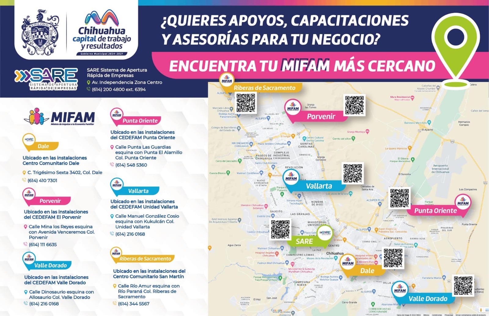 Actualmente el Gobierno Municipal de Chihuahua cuenta con seis Módulos de Impulso a la Economía Familiar (MIFAM) en las siguientes ubicaciones: