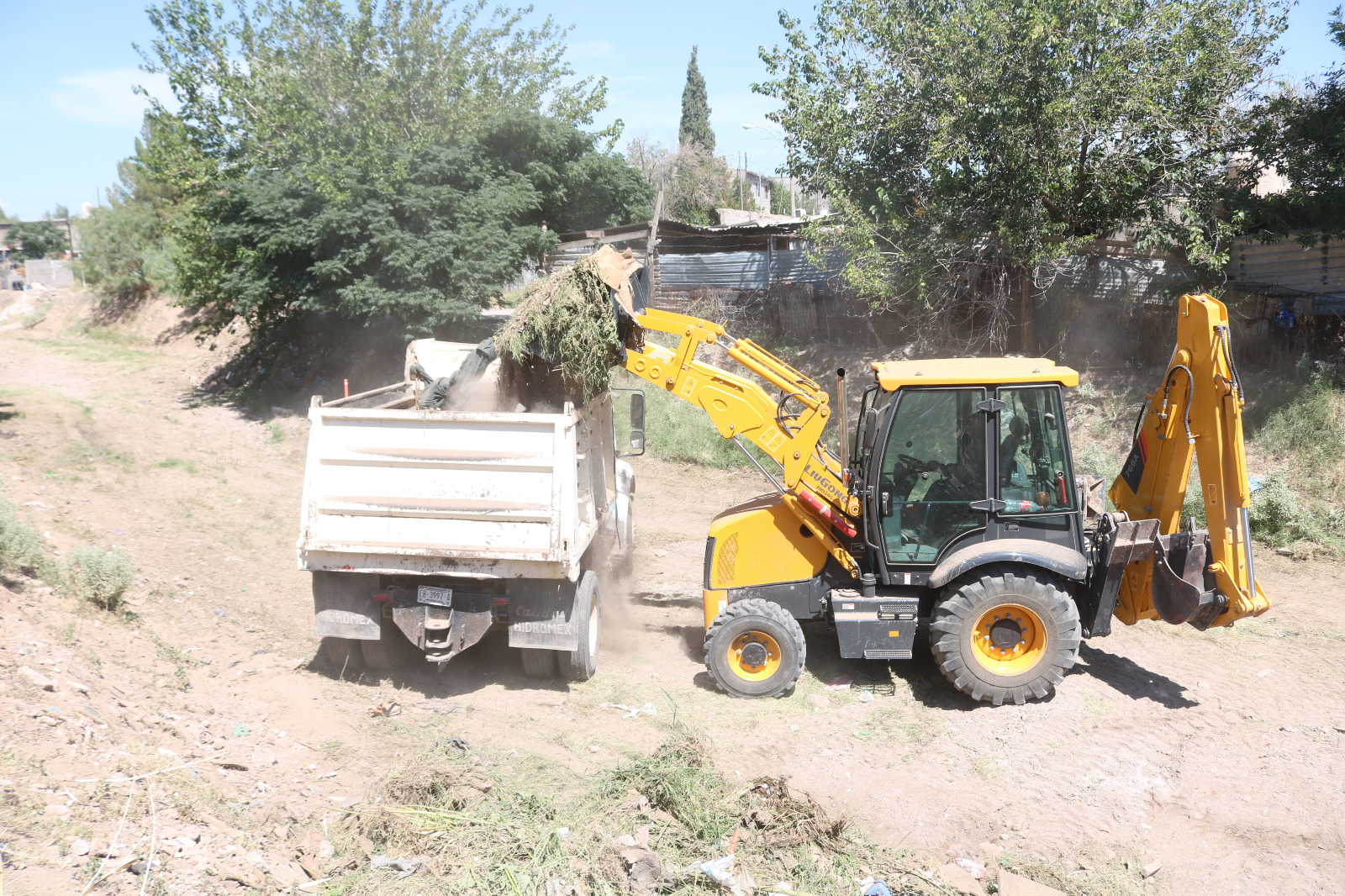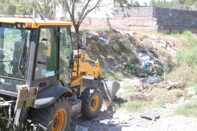 Con maquinaria pesada, personal de la dependencia en mención se encarga de retirar la basura acumulada, además de remover el escombro que la ciudadanía deposita en estos espacios, esto, para evitar taponamientos que a su vez podrían derivar en una inundación.