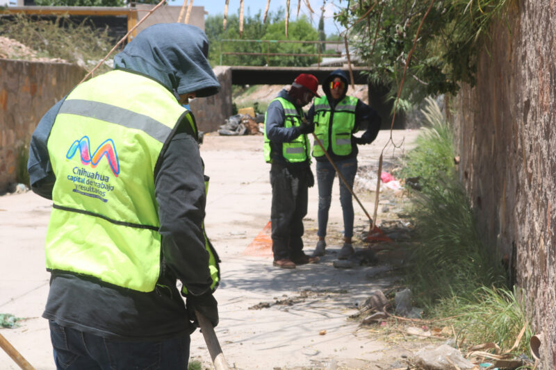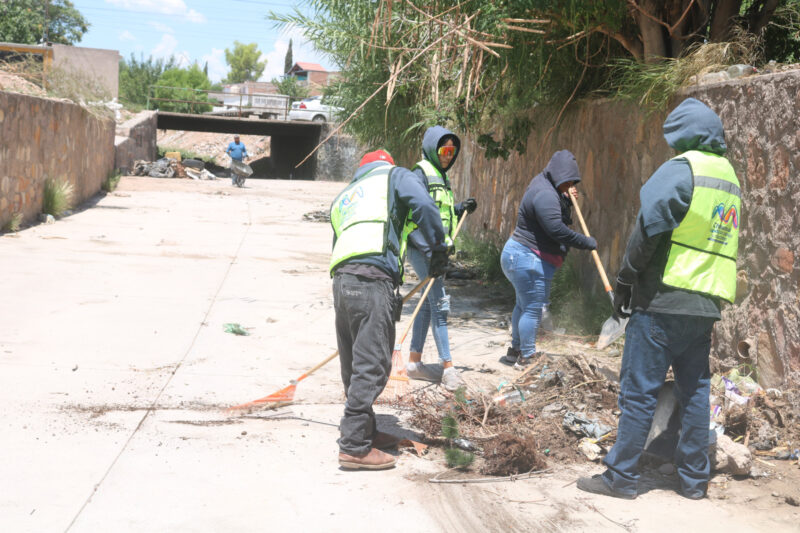 Chihuahua, Chih. A 11 de julio de 2024.- Con el objetivo de mantener una buena imagen urbana y evitar acumulación de basura, el Gobierno Municipal, a través de la Dirección de Servicios Públicos Municipales, trabaja de forma permanente en la limpieza de arroyos al norte de la ciudad, así como las partes canalizadas de diferentes afluentes.