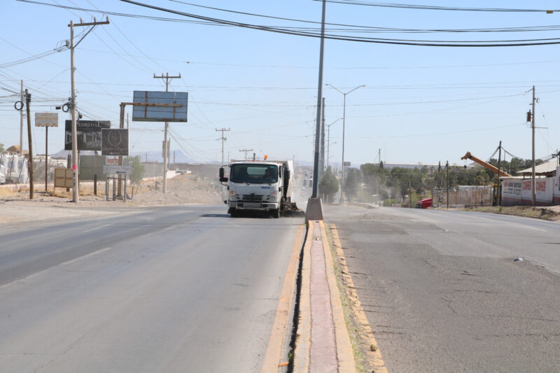 Chihuahua, Chih. A 16 de abril de 2024.- El Gobierno Municipal, a través de la Dirección de Servicios Públicos Municipales, trabaja de forma permanente en la limpieza de calles y avenidas con barrido mecanizado.