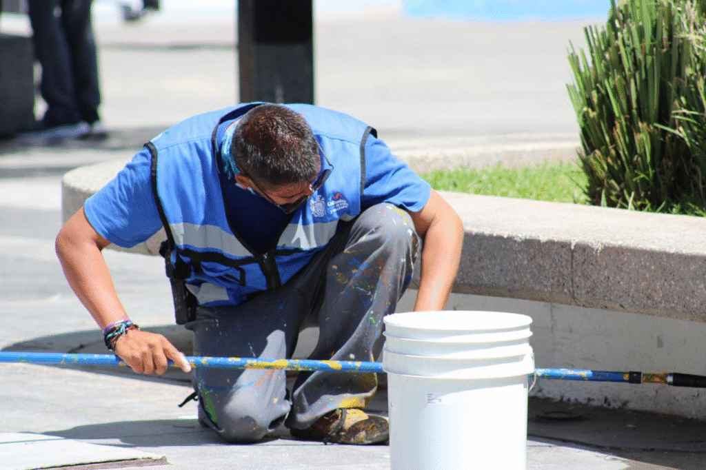 El mantenimiento de los espacios públicos, aunque a veces pasa desapercibido, es clave para conservar el aspecto del Centro Histórico, donde las jardineras, bancas y faroles requieren atención constante debido al desgaste por el uso y las condiciones climáticas. Mientras el trabajador avanzaba en su labor, algunos transeúntes observaban con curiosidad, aunque la mayoría seguía su camino sin detenerse, inmersos en el ritmo acelerado de la capital.