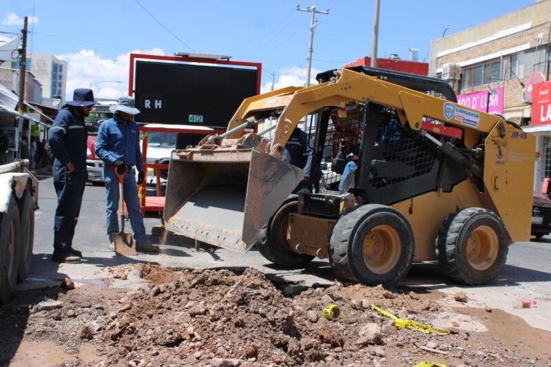 Trabajadores de la JMAS Reparan Fuga de Agua Potable en Niños Héroes con Maquinaria Pesada