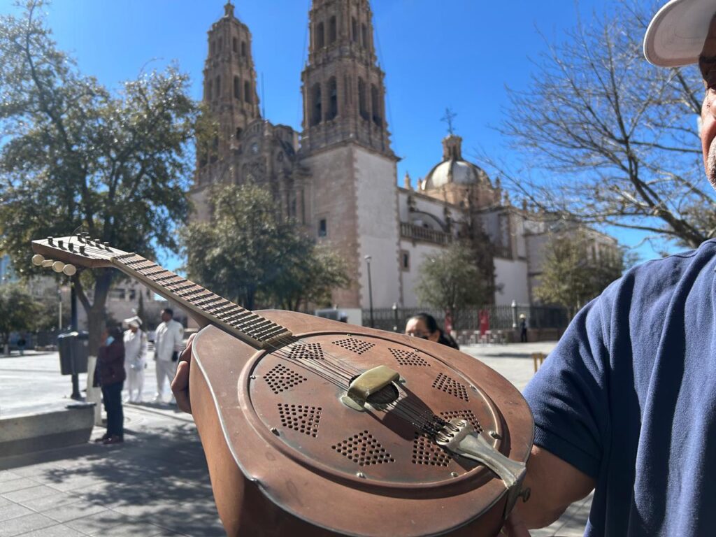 En el corazón del centro histórico, entre el ir y venir de los transeúntes que disfrutan del sol matutino en la Plaza de Armas , siempre hay espacio para encontrar una reliquia. Esta mañana, jueves 19 de febrero de 2026, don Salvador se ha convertido en el centro de las miradas curiosas. Sentado en una de las bancas del primer cuadro de la ciudad, ofrece un objeto que pocos logran identificar a simple vista: una mandolina antigua de metal, con la pátina del óxido cubriendo su cuerpo.