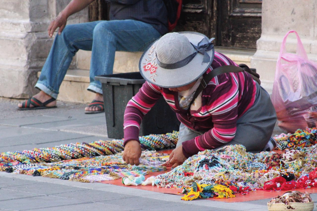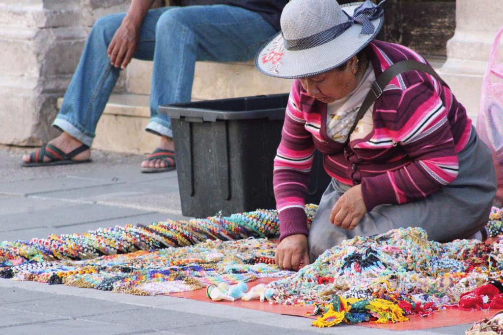 Con pulseras tejidas a mano, collares de chaquiras y otras piezas típicas de la cultura tarahumara, la artesana atrae las miradas de los peatones. Cada artículo, elaborado con técnicas ancestrales, cuenta una historia y representa un pedazo de la riqueza cultural de la Sierra Tarahumara.