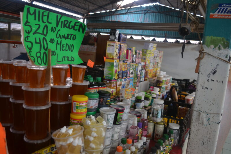 Al salir del local de comida “La Cuarta” donde nos encontramos un lugar, un tanto desolado, sombrío y gris, un lugar contrastante con lo que se vive afuera, en los pasajes y pasillos aledaños, al ver ese lugar donde en la entrada se encuentra llena de los hombres, mujeres y niños, amantes de las maquinitas tragamonedas, expectantes e impacientes por ganar por lo menos unos $50 pesos en moneditas de un peso y darle alegría a su día o solamente para distraerse de su realidad u ocupaciones, gastando la morralla que les acompaña; entramos y nos encontramos con un pasillo con unos cuantos vendedores, rodeados de escombros y un pintoresco puestito de comida; a lo largo o más bien corto recorrido por dicho pasillo nos podemos encontrar con diversos productos “milagro”, plantas medicinales, miel o bien frutas y verduras, además de otros comestibles y productos, este lugar le hace honor a su nombre, llamado, el mercado “El Hoyo”.